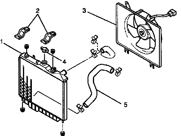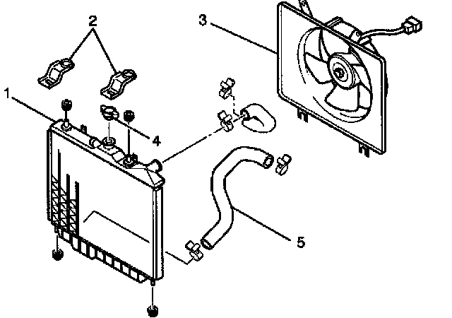 2. Install radiator assembly with hose, taking care not to damage the radiator core with a fan blade.