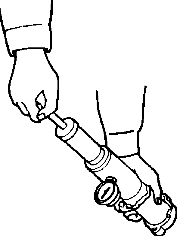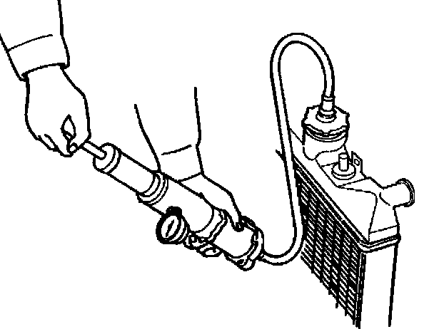 Use a radiator cap tester to force air into the radiator through the filler neck at the specified pressure of 196 kPa (28.5 psi) with a cap tester: