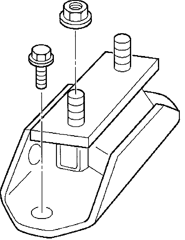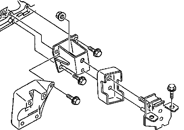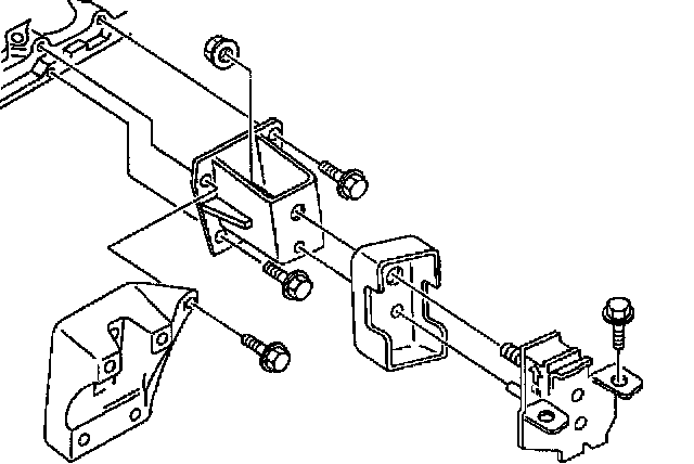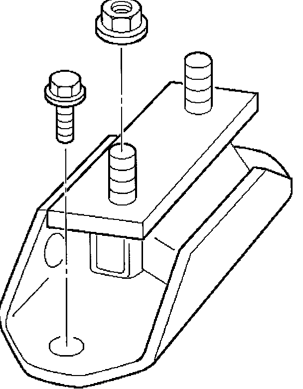 15. Install transmission mounting fixing bolts and nuts to cross member.