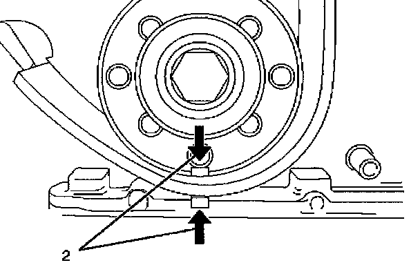 1. Turn crankshaft in engine rotational direction to alignment mark (2) 1st cylinder "TDC".