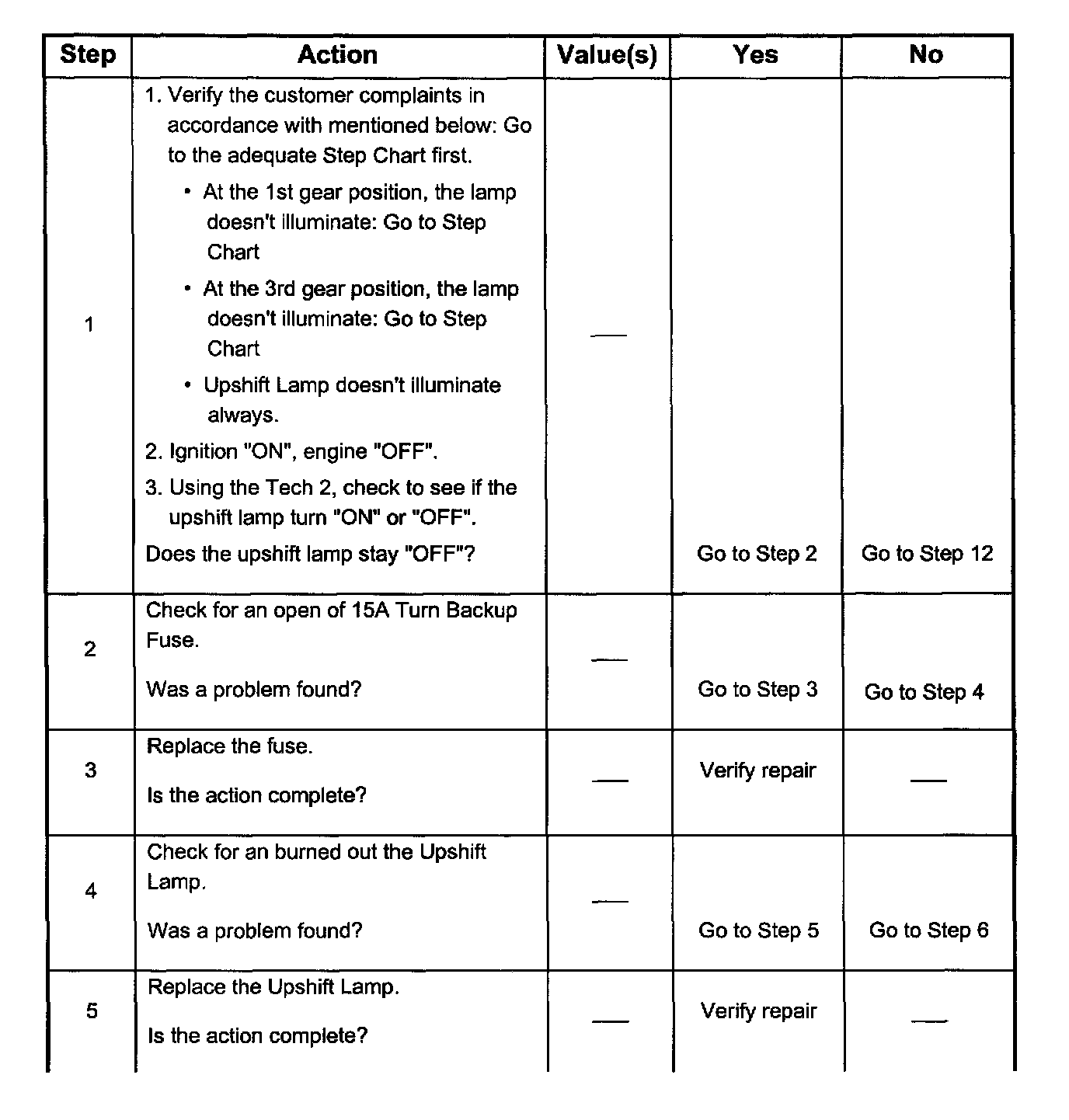 Upshift Lamp System Check (Manual Transmission Only)Circuit Description