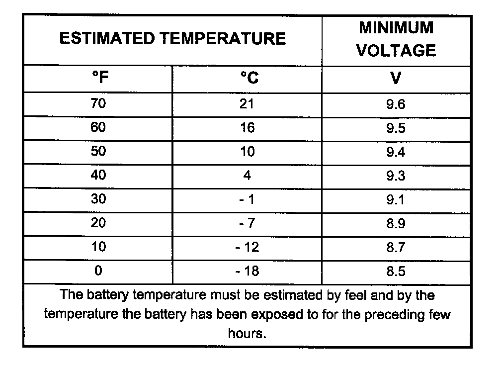 a. VOLTAGE DOES NOT DROP BELOW THE MINIMUM LISTED IN THE TABLE - The battery is good and should be returned to service.