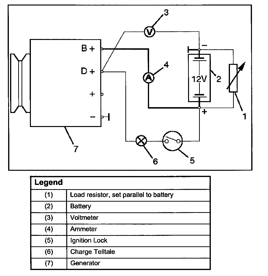 4. If the required minimum current intensity is not attained, or if the oscilloscope picture shows variations, the alternator should be overhauled.