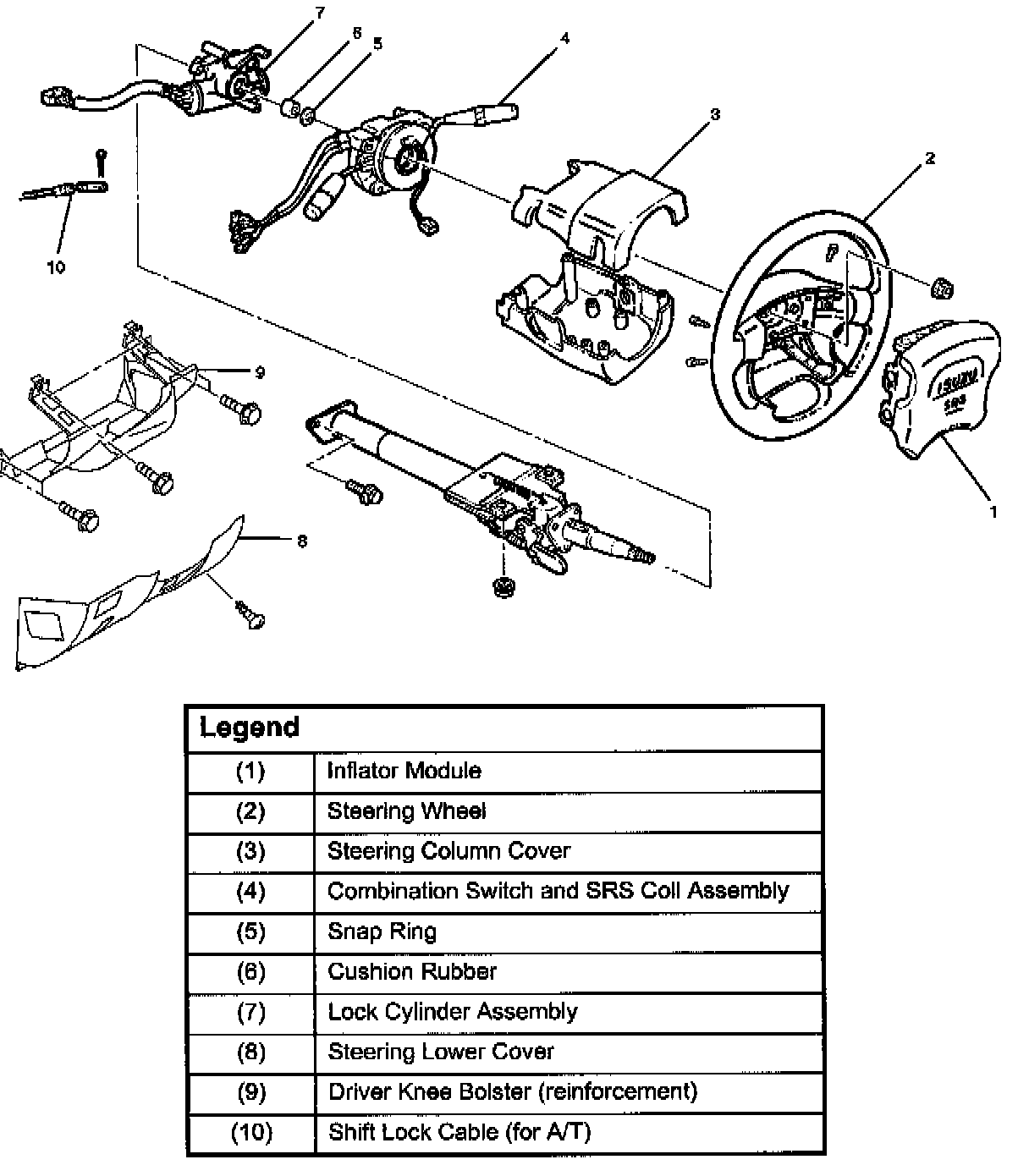 NOTE: The SRS coil is a part of the combination switch assembly, which can not be replaced separately. Therefore, be sure not to remove the SRS coil from the combination switch assembly.