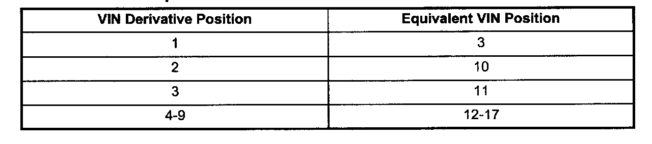 A VIN derivative can be used to determine if a vehicle contains the original engine or transmission, by matching the VIN derivative positions to their accompanying positions in the complete VIN: