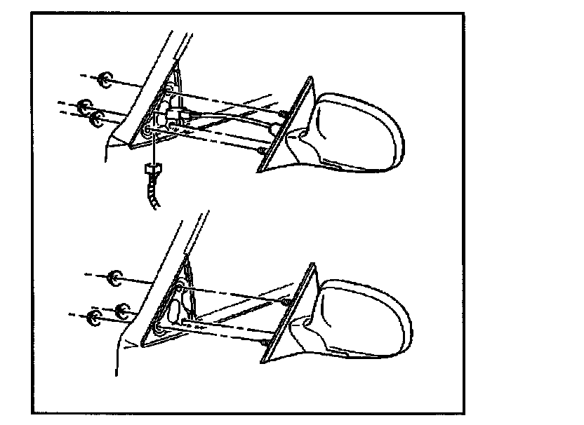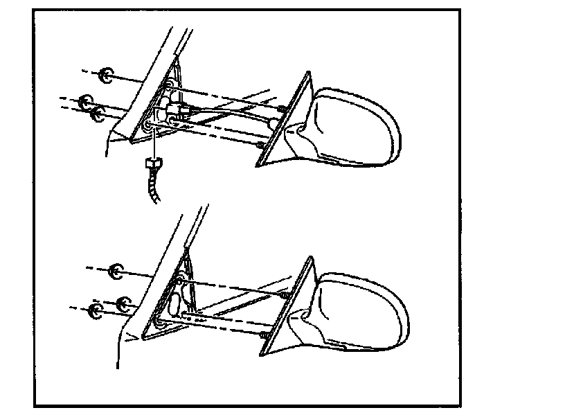 3. Remove the nuts that retain the outside rearview mirror to the door.