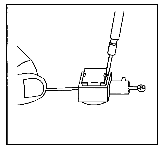 1. With a small flat-bladed tool, carefully pry up on the cruise control cable adjuster to the unlocked position. The toggle lever is natural in color in order to provide a visual aid.