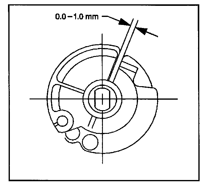 2. Adjust the length of the cruise control cable until there is a clearance of 0.0 - 1.0 mm (0.0 - 0.04 in) between the cruise control cable and the accelerator cable throttle lever cams.