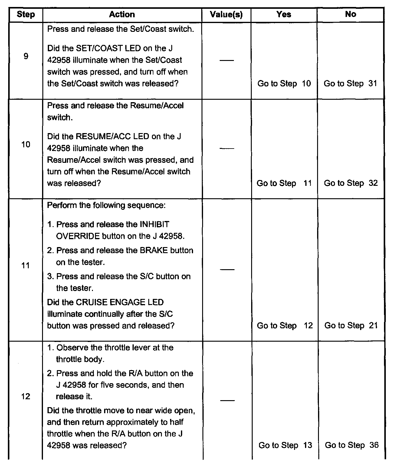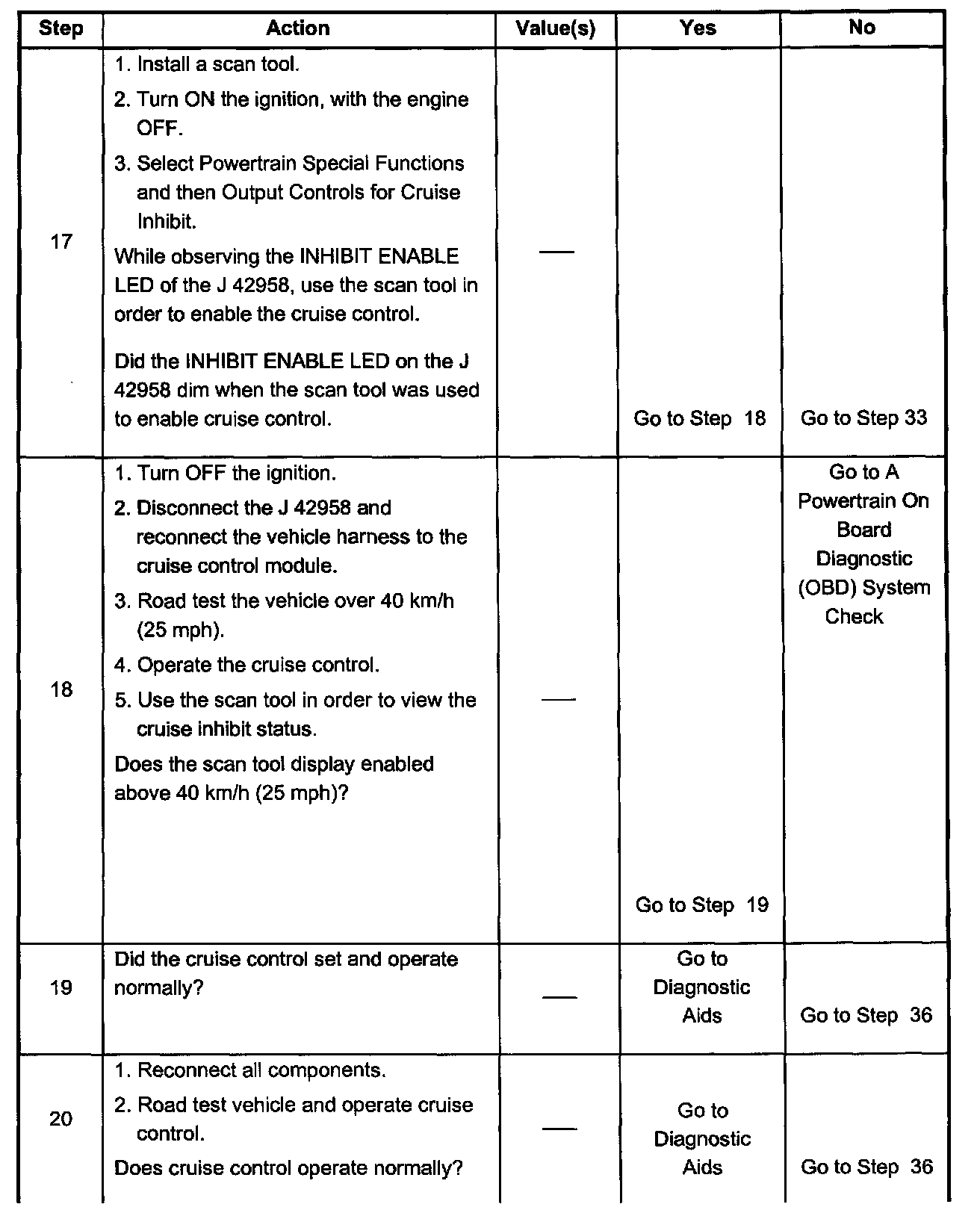 The PCM will inhibit (not allow) cruise control if one or more of the following has occurred: