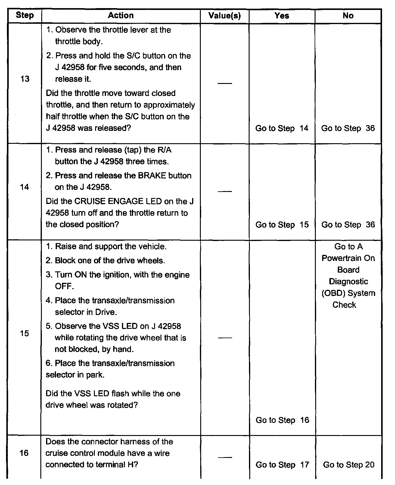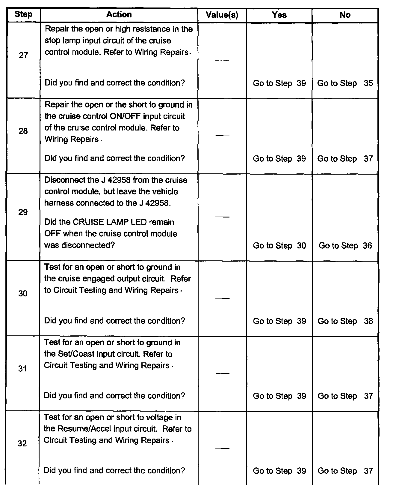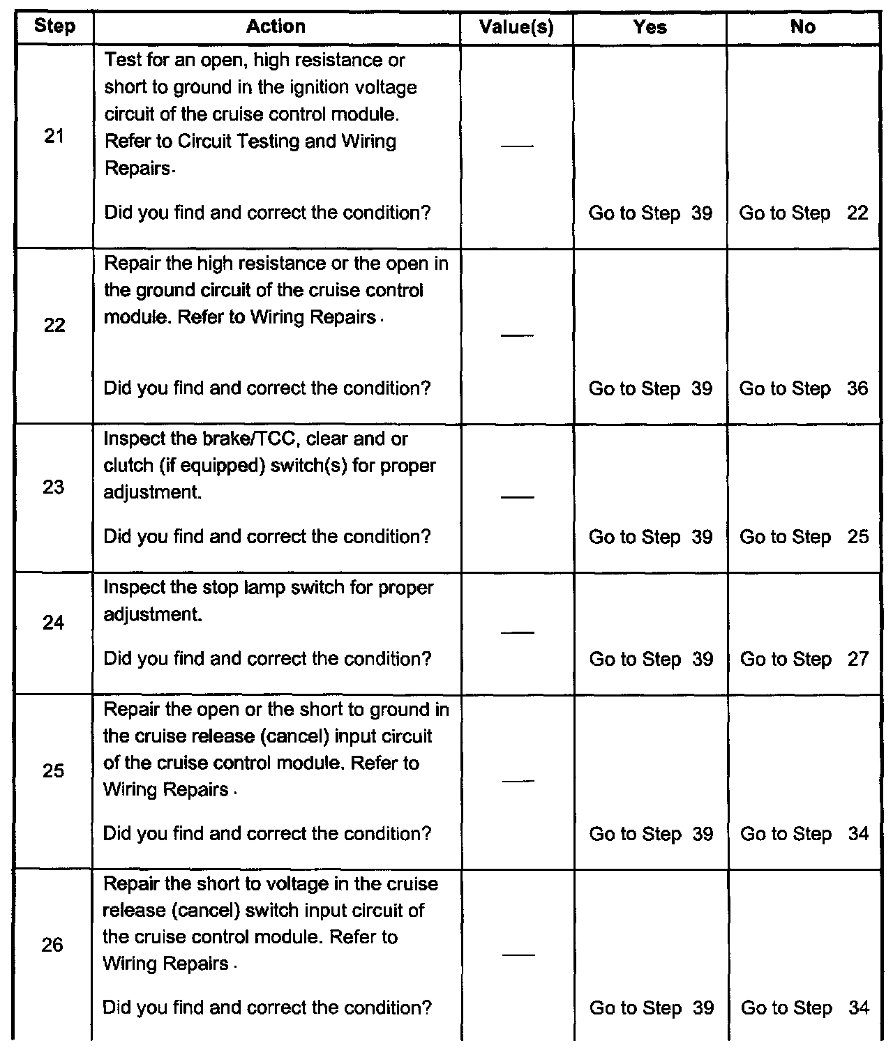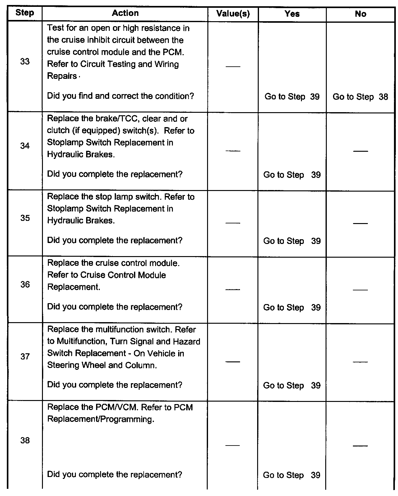 - Inspect cruise control cable adjustment.