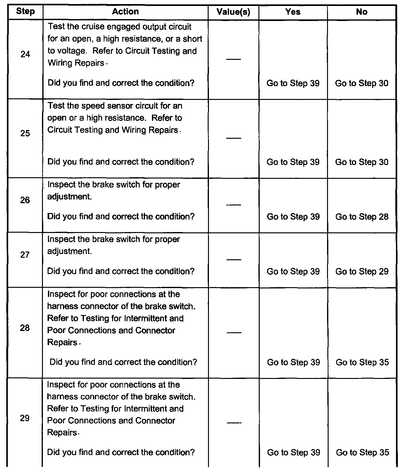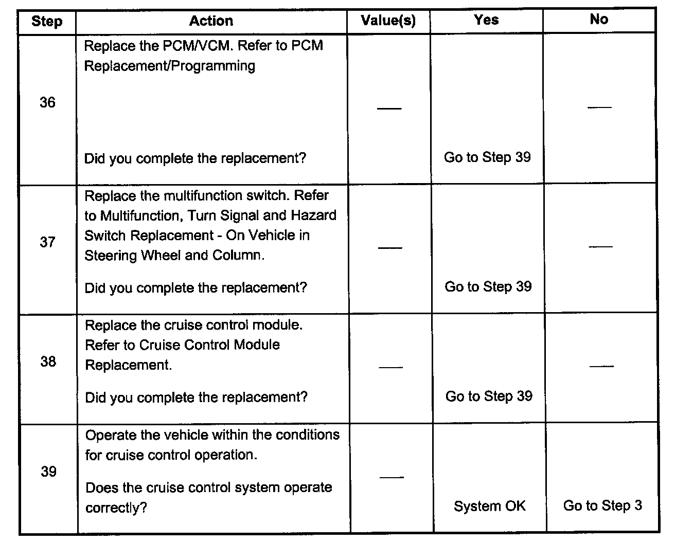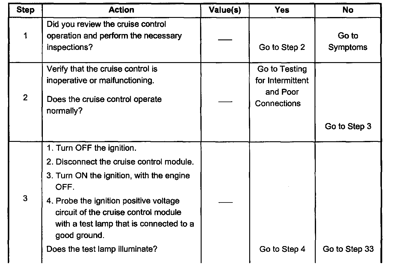 - Inspect cruise control cable adjustment, should have minimum slack.