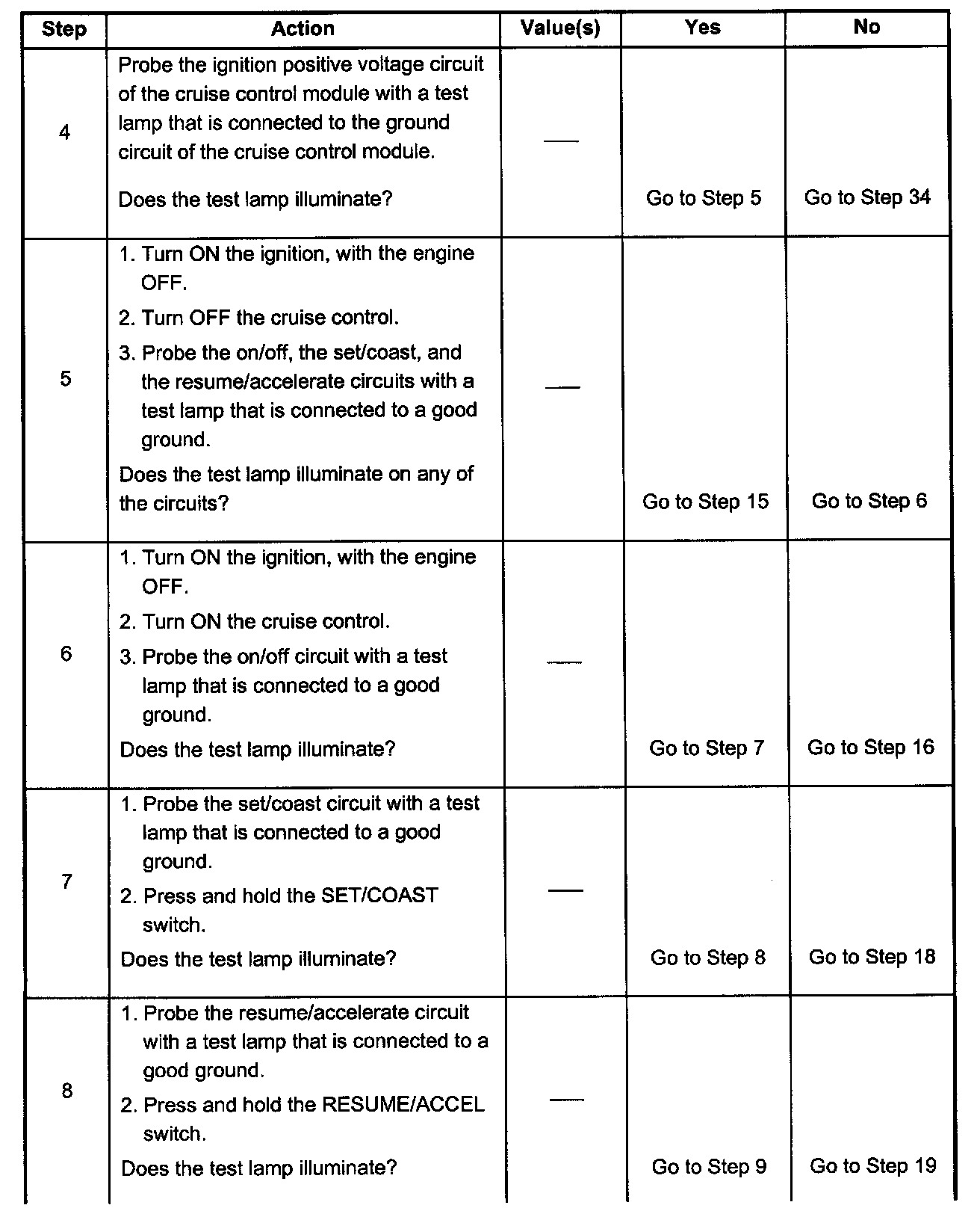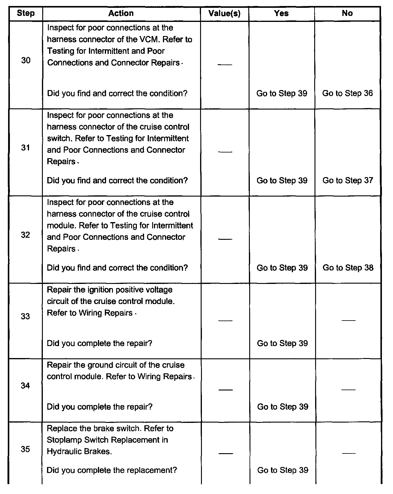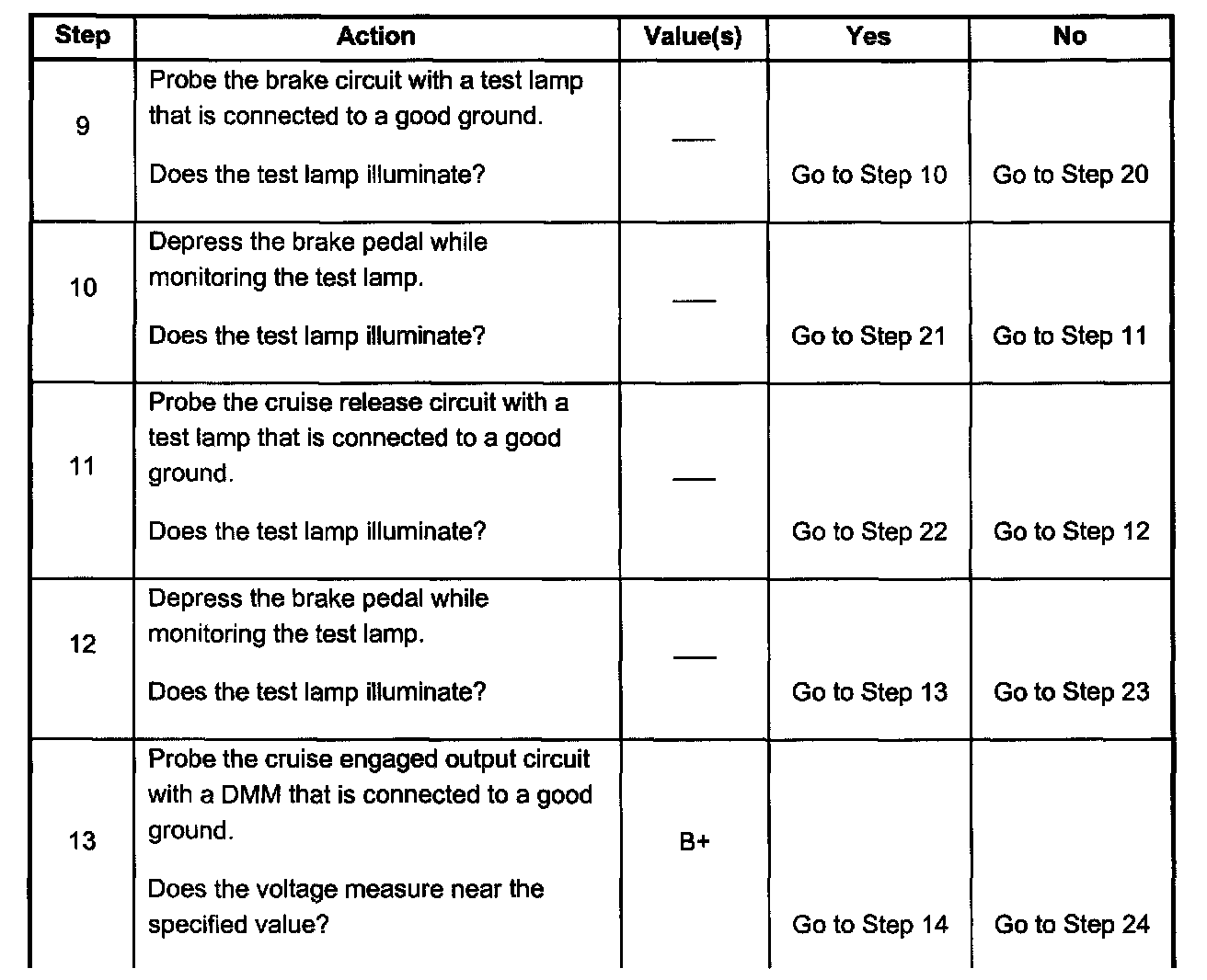 - Inspect cruise control cable adjustment, should have minimum slack.