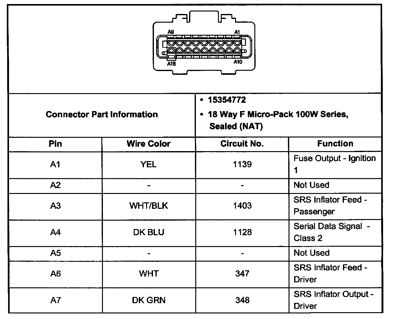 Supplemental Restraint Sensing And Diagnostic Module (SDM) [A8 - A18]:
