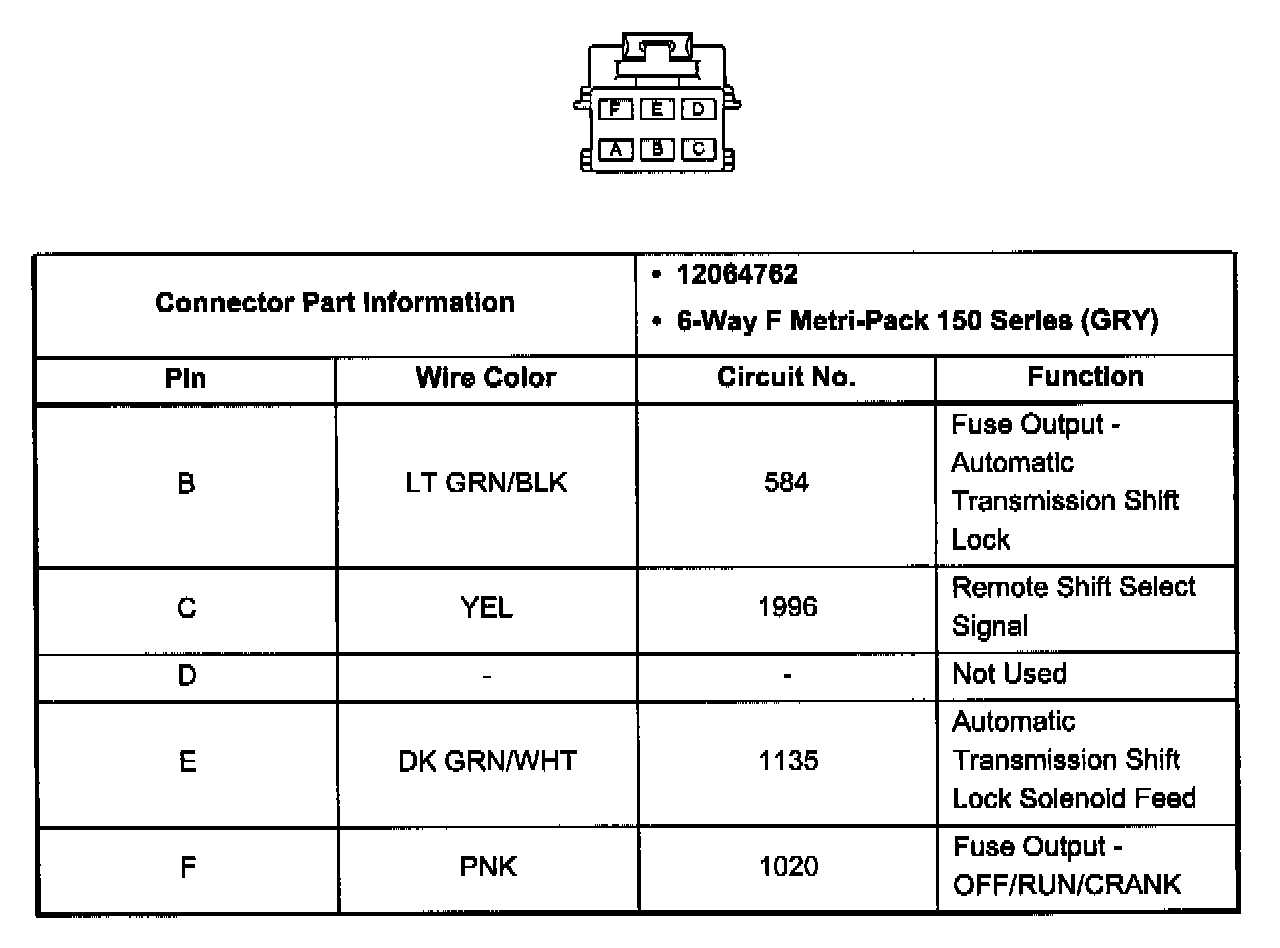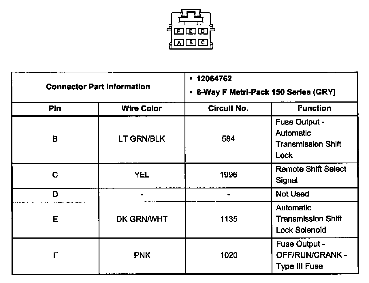 A/T SHIFT LOCK CONTROL CONNECTOR END VIEWSAutomatic Transmission Controller