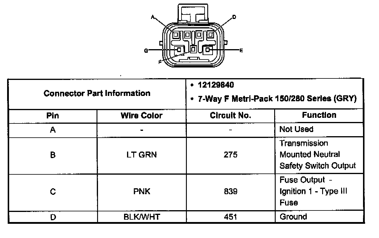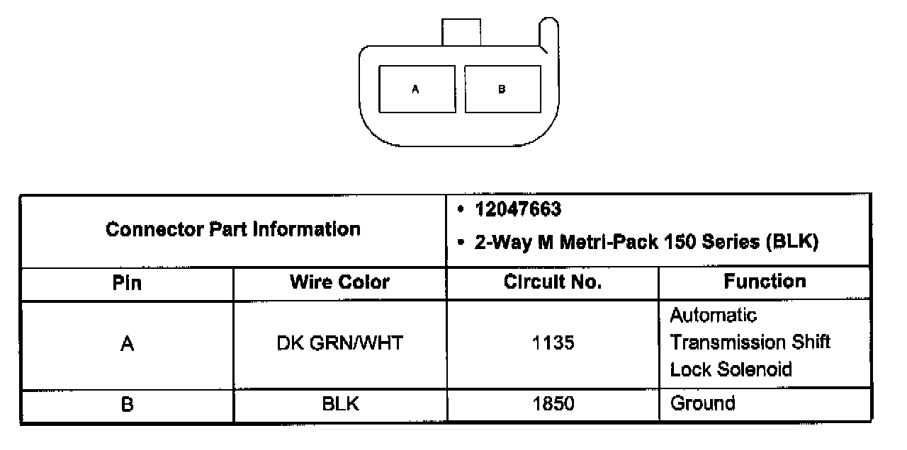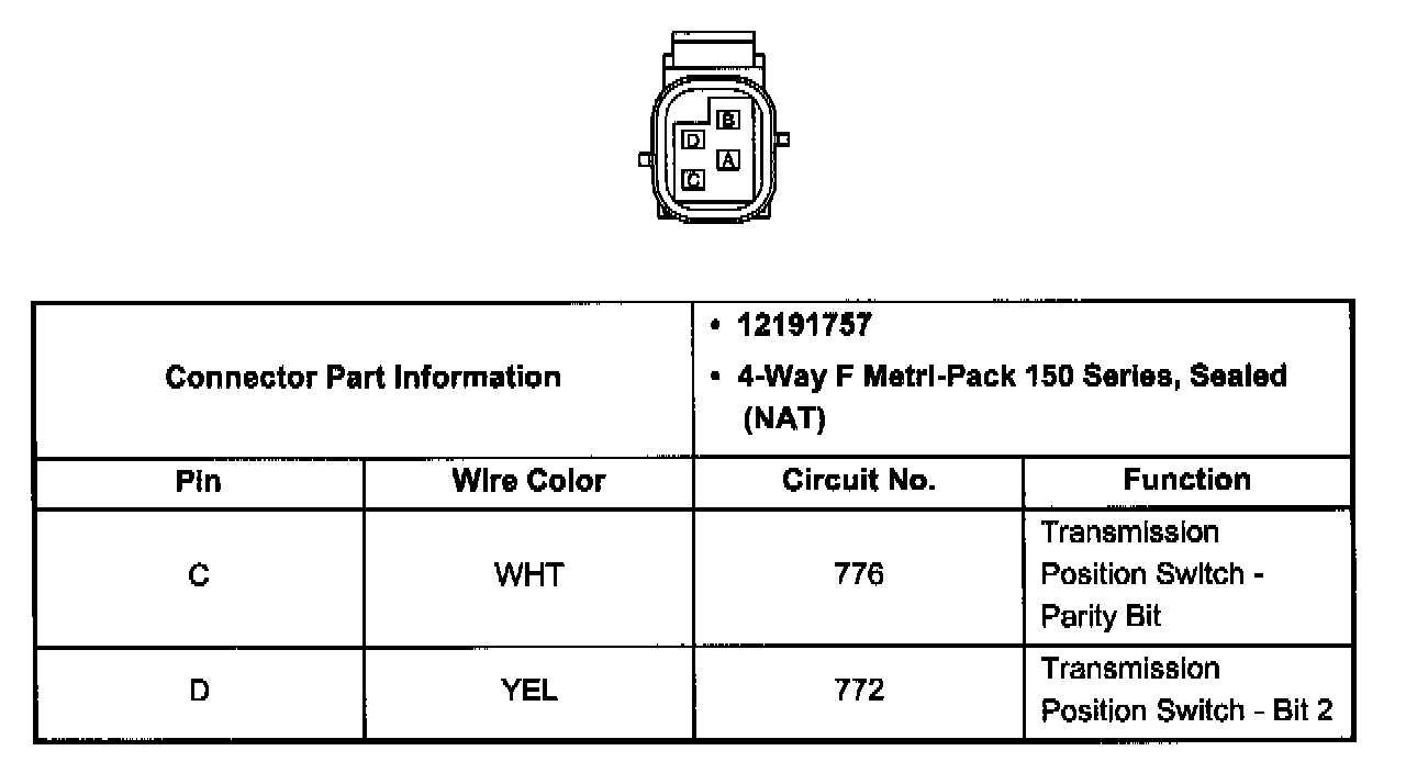 Park/Neutral Position and Backup Lamp Switch Connector C1