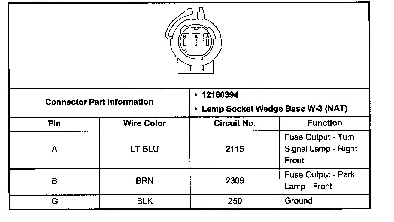 Park and Turn Signal Lamp, LF Connector: