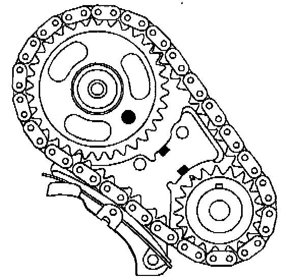Notice: Align the timing marks before removing the timing chain. If it is necessary to turn either the camshaft or the crankshaft with the timing chain removed, loosen or remove the valve rocker arms. Taming either the crankshaft or camshaft with the timing chain removed may cause the pistons to contact the valves, resulting in damage.