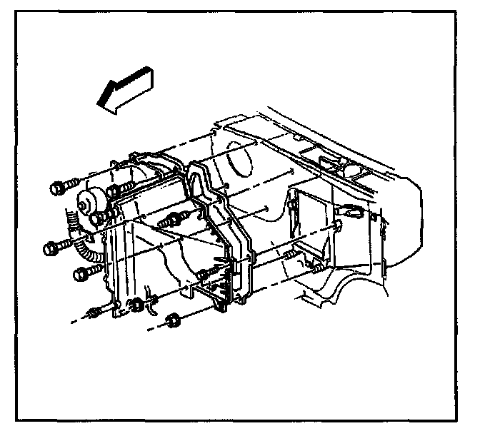 7. Install the heater core case to the bulkhead mounting bolt.