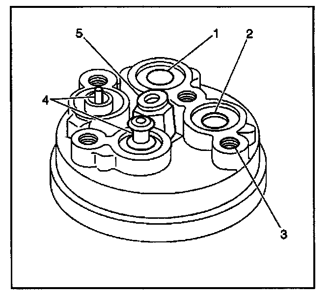 2. Disconnect the electrical connector from the switch (4) in the rear head of the compressor.