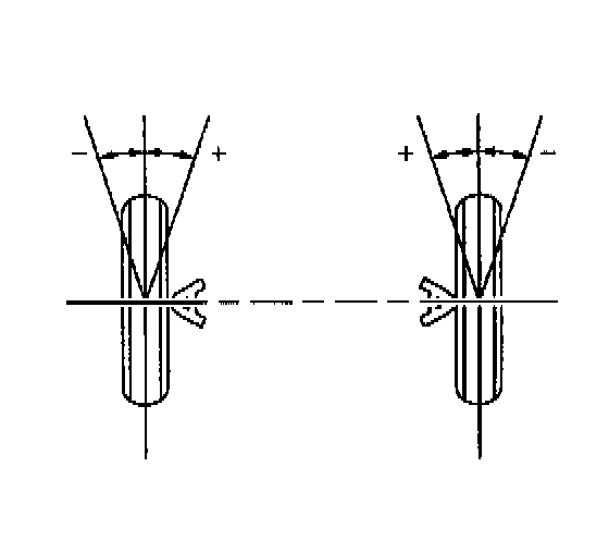 Toe is a measurement of how much the front and/or rear wheels are turned in or out from a straight-ahead position. When the wheels are turned in, toe is positive (+). When the wheels are turned out, toe is negative (-). The actual amount of toe is normally only a fraction of a degree. The purpose of toe is to ensure that the wheels roll parallel.