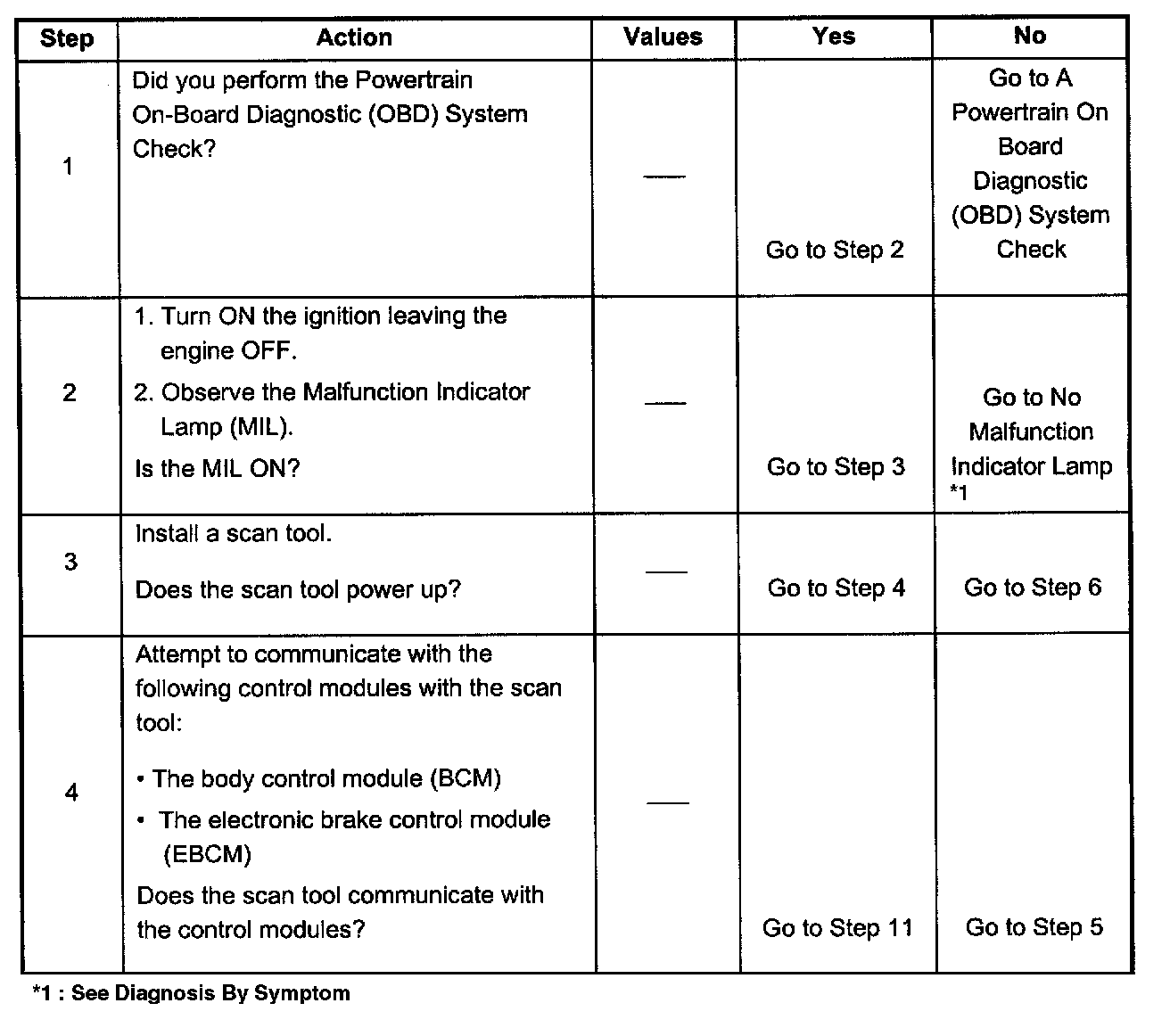 The numbers below refers to the step numbers on the Diagnostic Table.