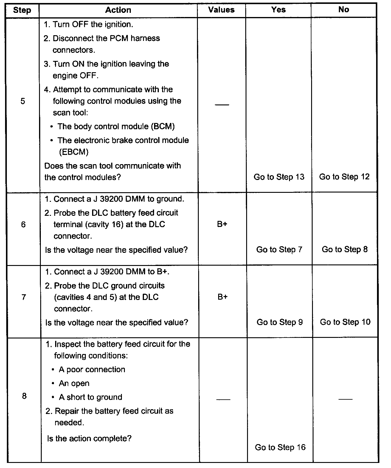 6. Inspect for proper voltage supply in the data link connector (DLC).