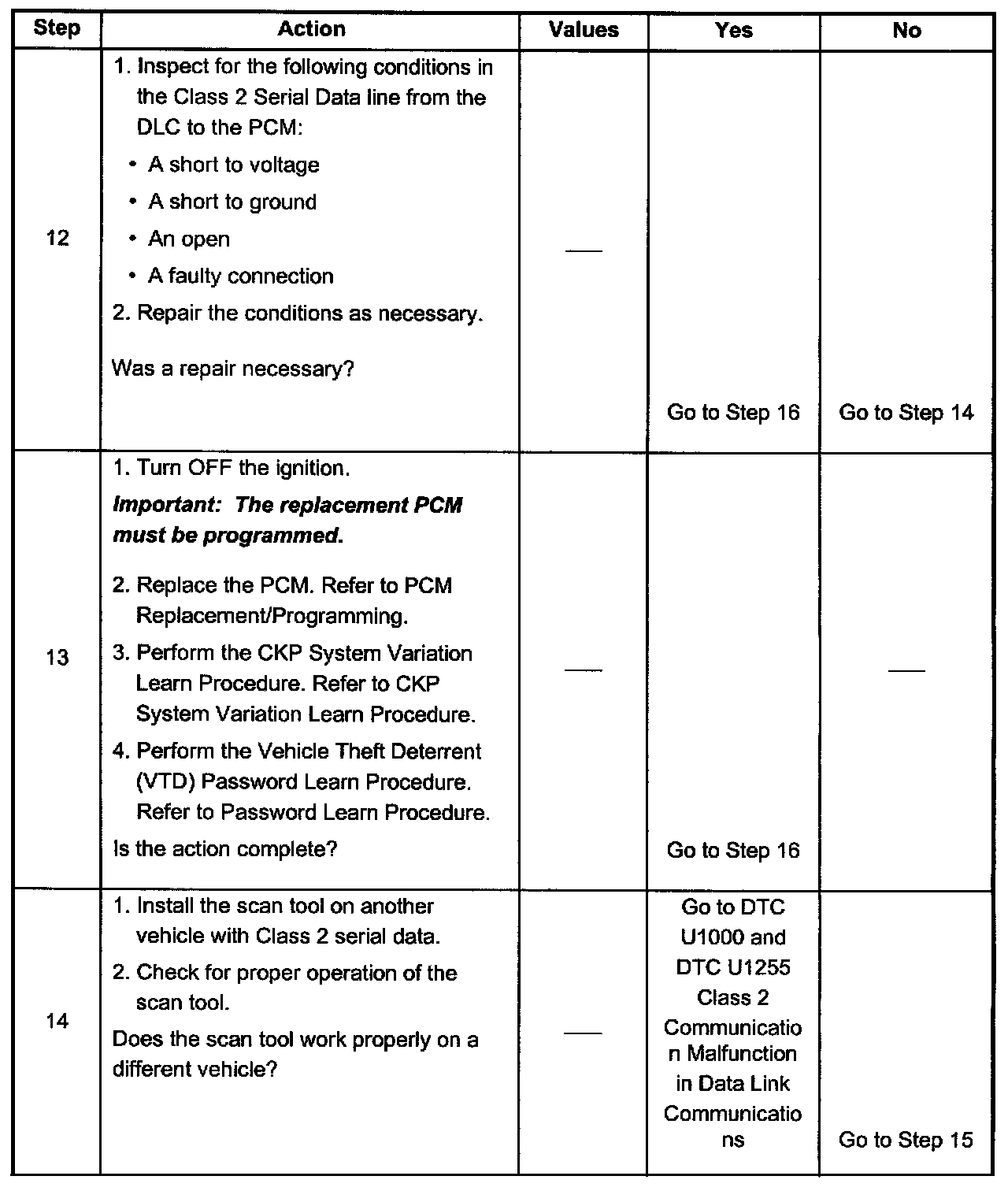 16. If the serial data loss occurred after a good theft password has been received, the PCM will allow the vehicle to start on following attempts After making the necessary repairs to the vehicle, program the PCM and complete the Password Learn Procedure and the Crankshaft Position System Variation Learn Procedures in order to allow the theft system to operate properly.