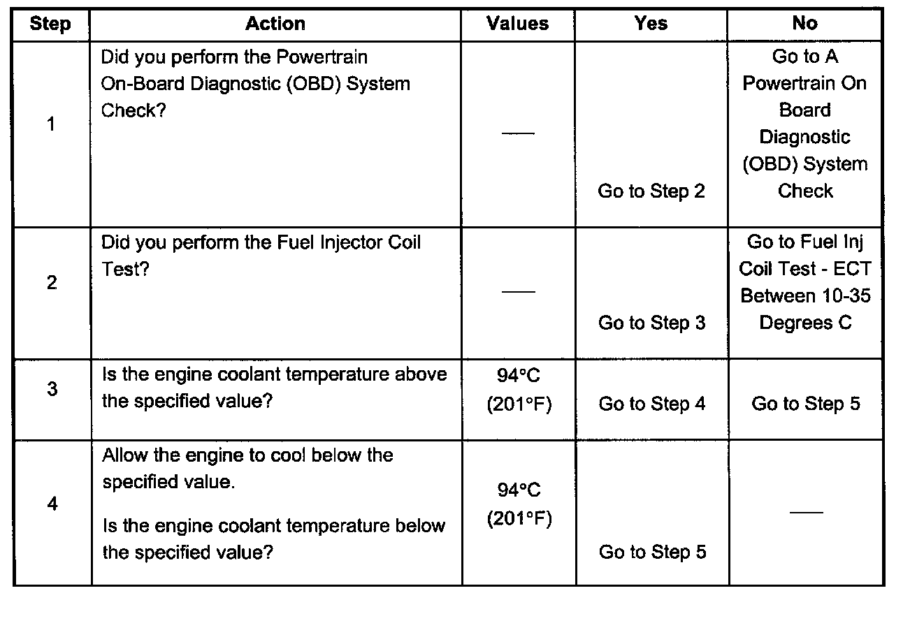 4. The engine coolant temperature must be below the operating temperature in order to avoid irregular fuel pressure readings due to Hot Soak fuel boiling.