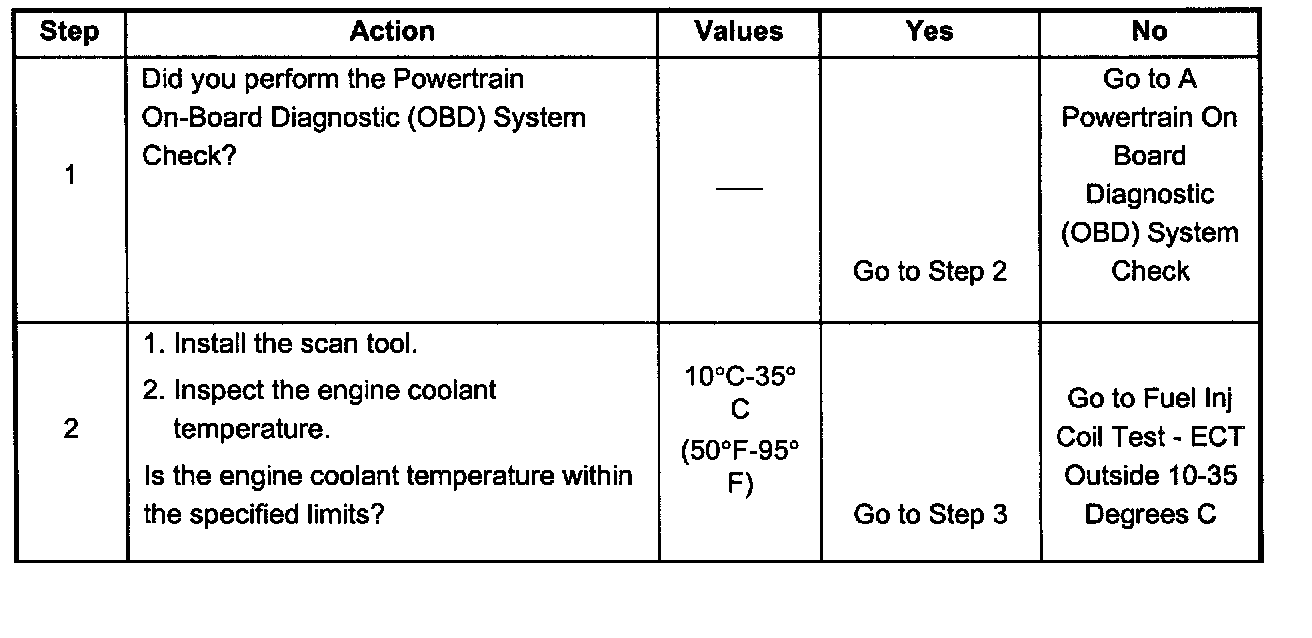 Fuel Inj Coil Test - ECT Between 10 - 35 Degrees CExample - Resistence Vs Voltage Specification: