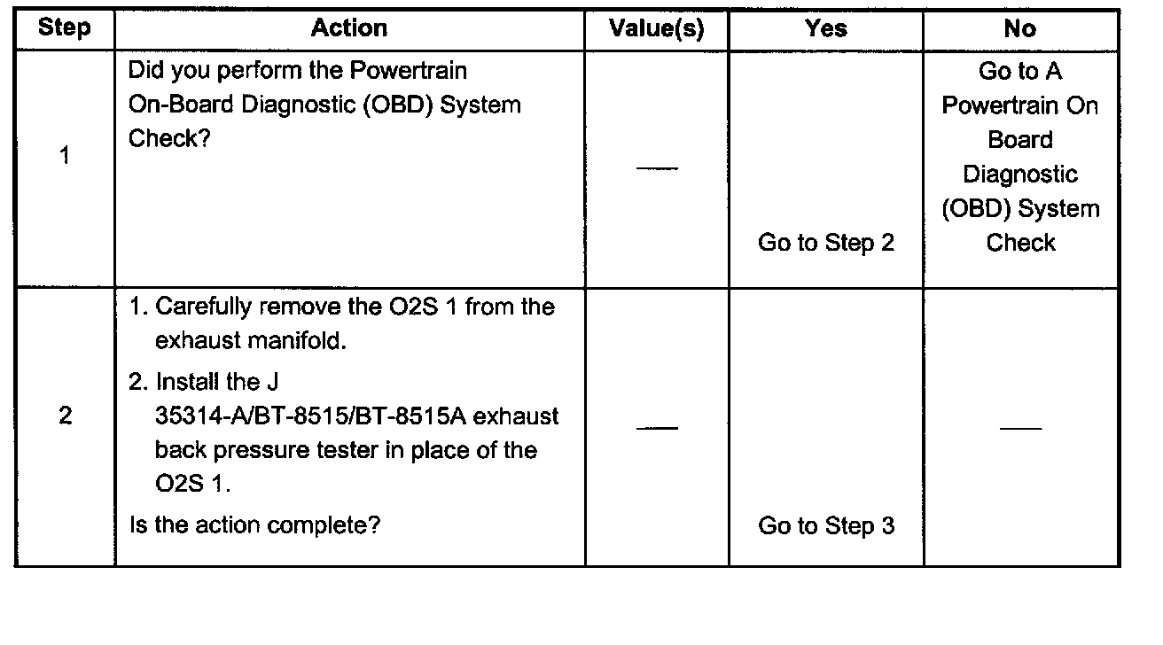 Proper diagnosis for a restricted exhaust system is essential before any components are replaced. Using the Restricted Exhaust System Check table should determine if the exhaust system is restricted. The best place for checking the exhaust system is at the O2S 1 location. Once the test is completed, coat threads with anti-seize compound prior to O2S re-installation.