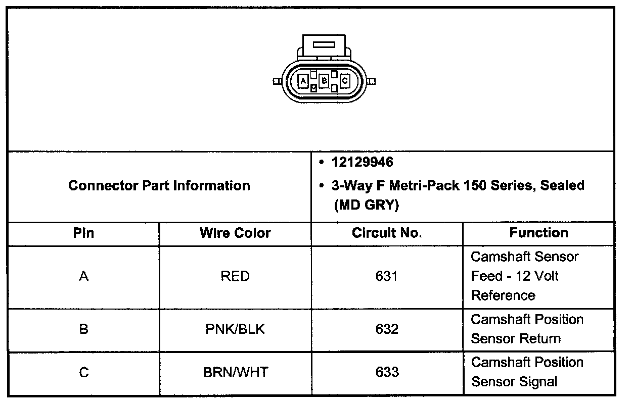 Camshaft Position (CMP) Sensor Connector (Pin A, B, C):