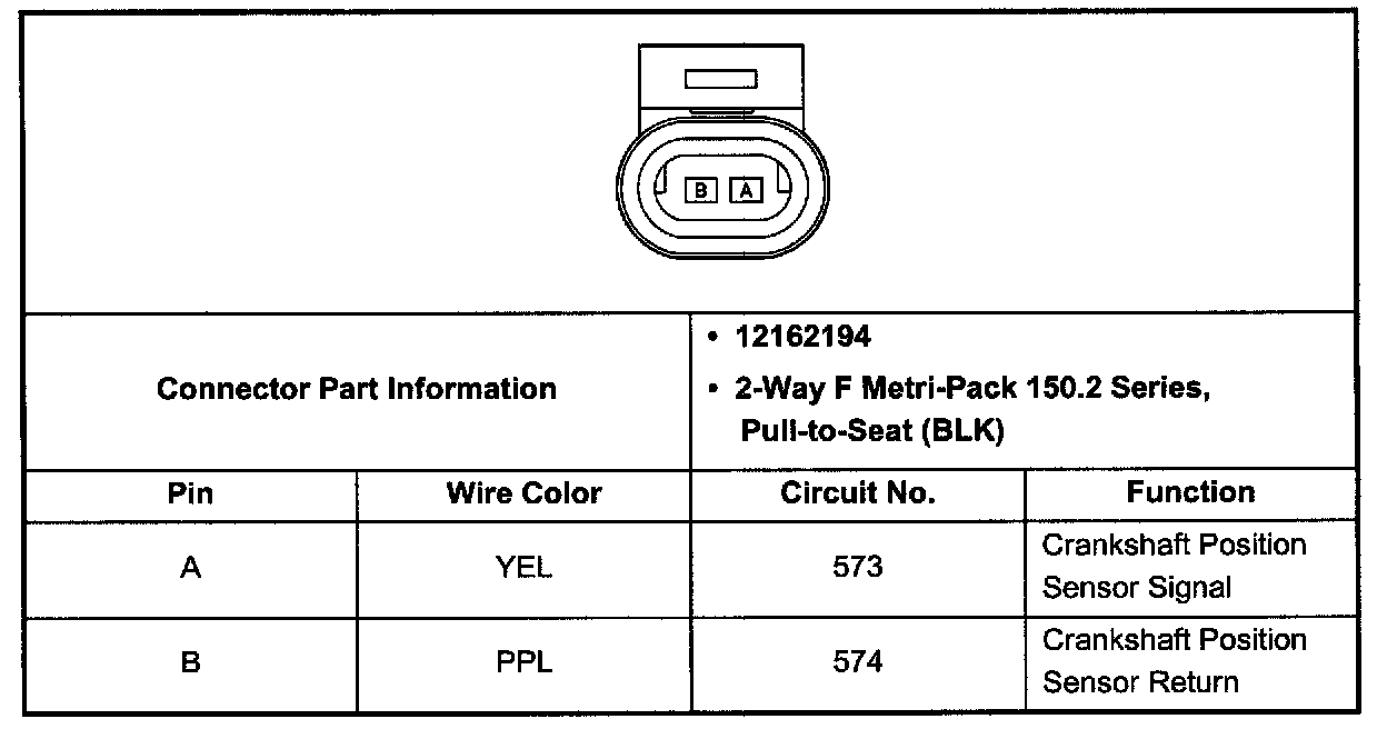 Crankshaft Position (CKP) Sensor Connector (Pin A, B):