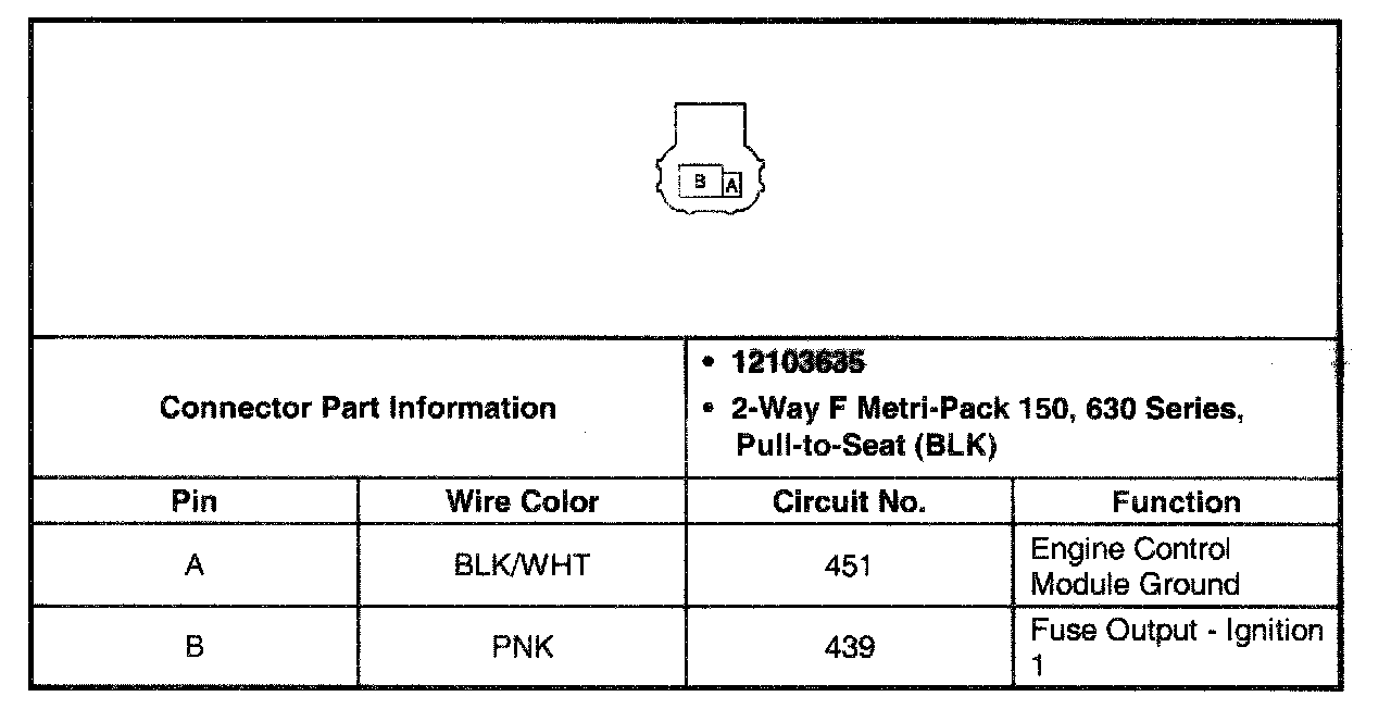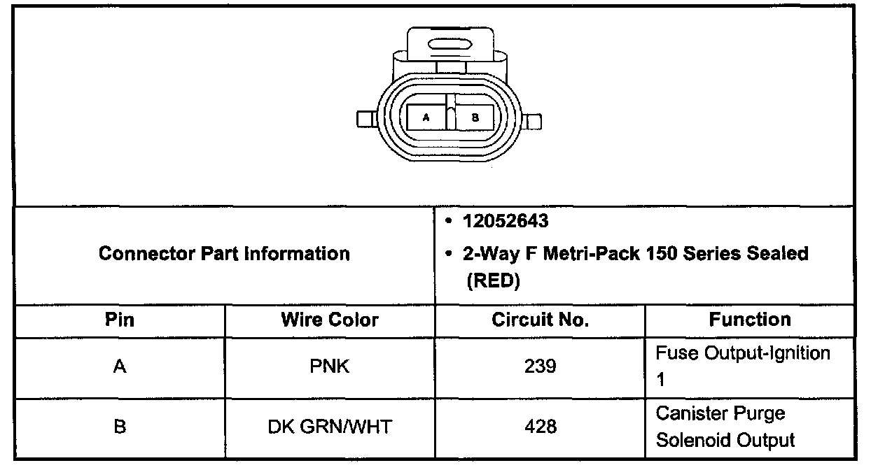 Evaporative (EVAP) Emissions Canister Purge Solenoid Valve Connector (Pin A, B):