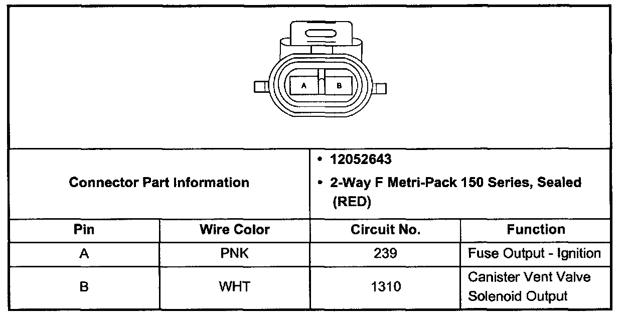 Evaporative (EVAP) Emissions Canister Control Valve Connector (Pin A, B):