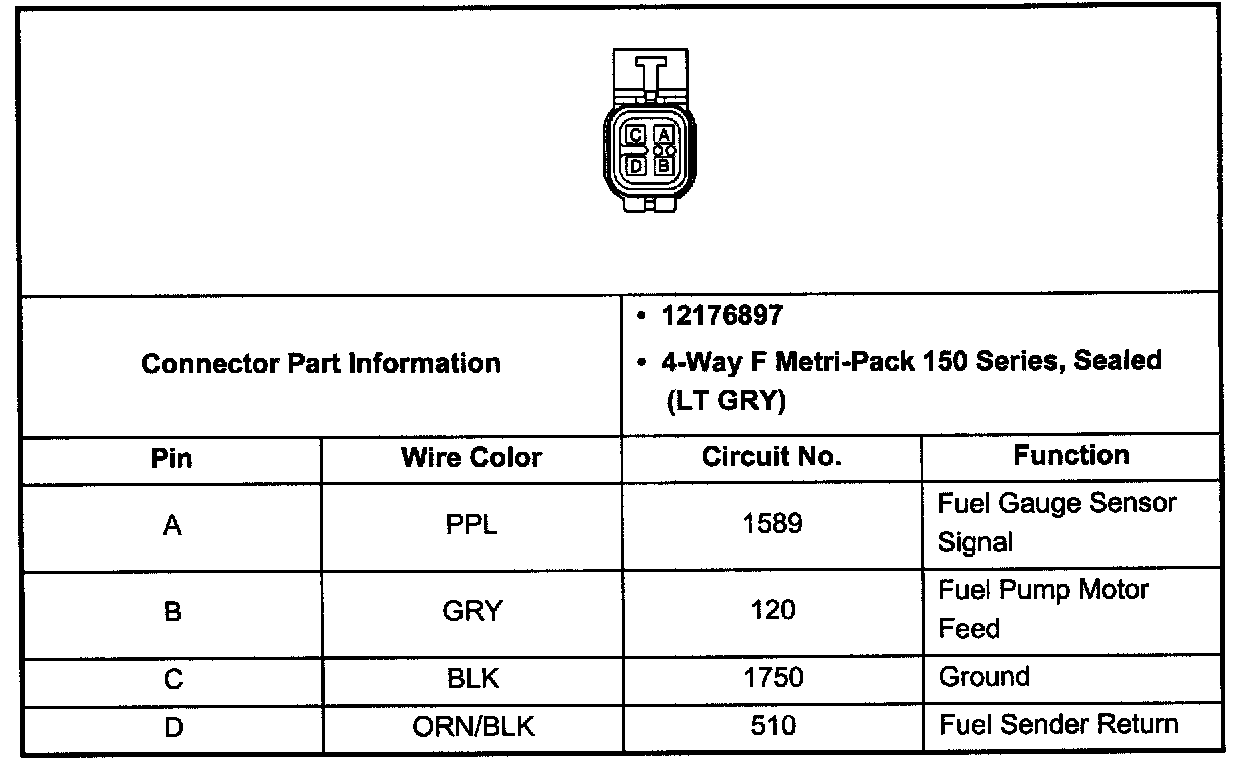 Fuel Pump And Sender Connector (Pin A, B, C, D):