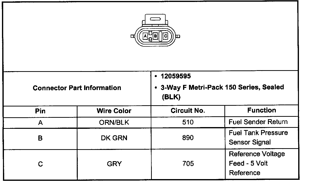 Fuel Tank Pressure Sensor Connector (Pin A, B, C):