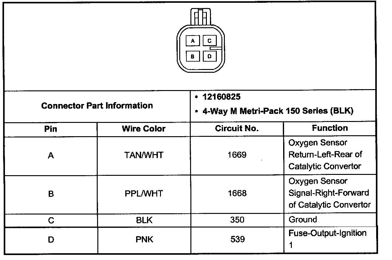Heated Oxygen Sensor (H2OS) Connector, Bank 1 Sensor 2 (Pin A, B, C, D):