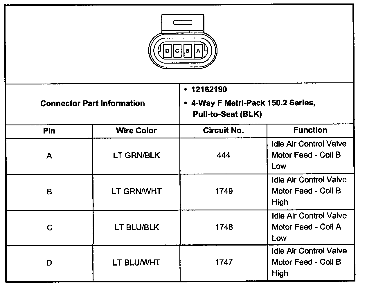 Idle Air Control (IAC) Valve Connector (Pin A, B, C, D):