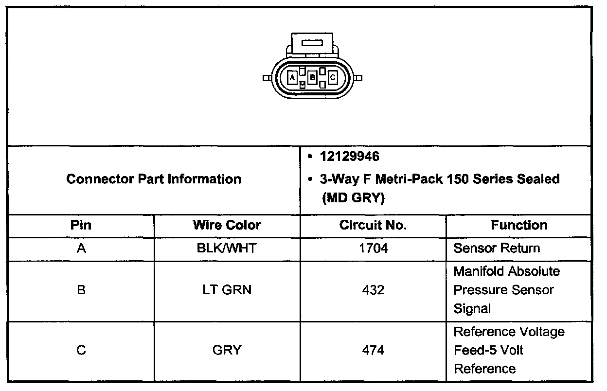 Manifold Absolute Pressure (MAP) Sensor Connector (Pin A, B, C):
