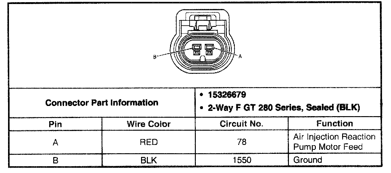 Secondary Air Injection Reactor (A.I.R) Pump Connector C2 (w/ California Emissions) (Pin A, B):
