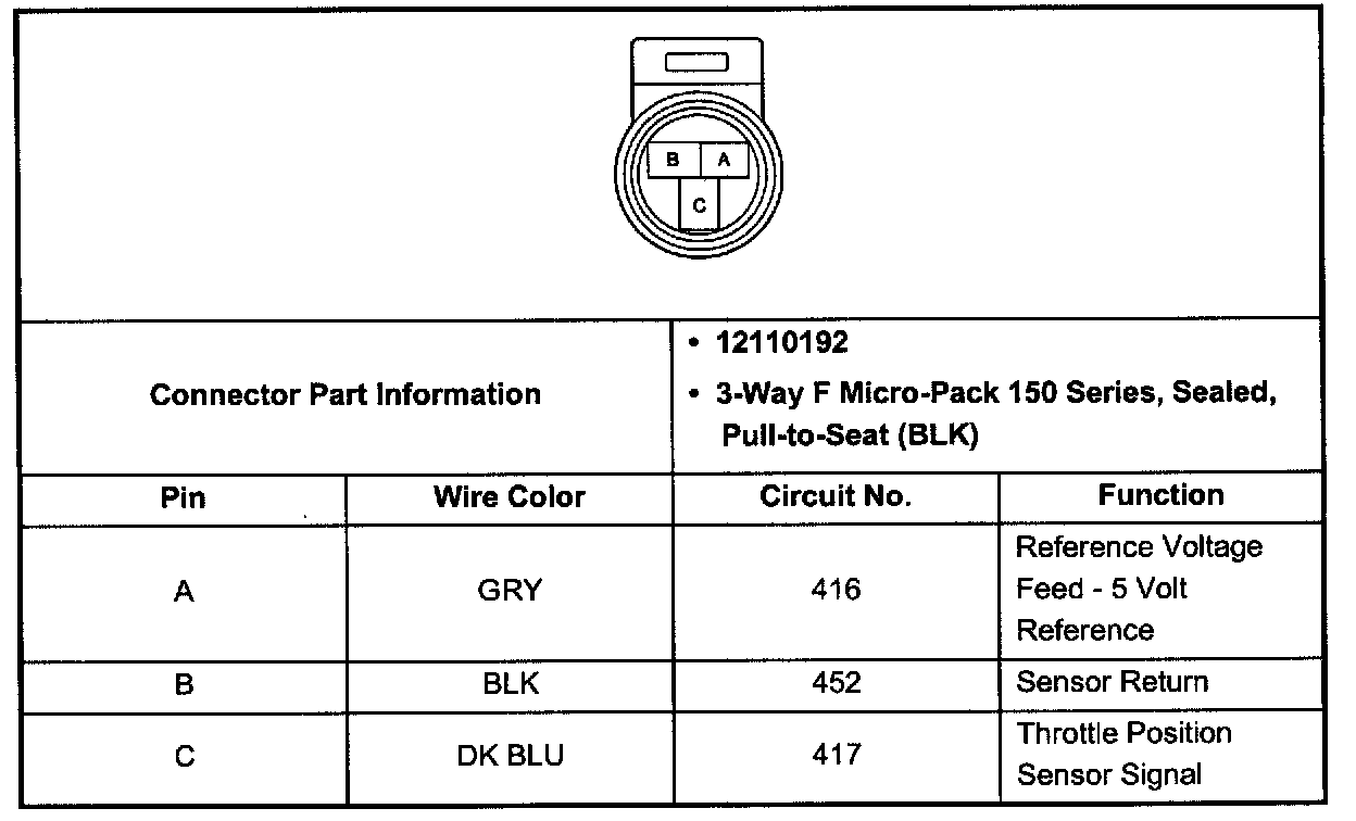 Throttle Position (TP) Sensor Connector (Pin A, B, C):