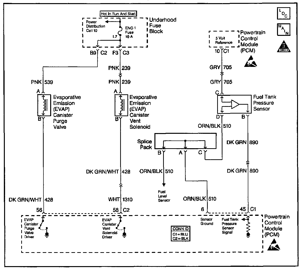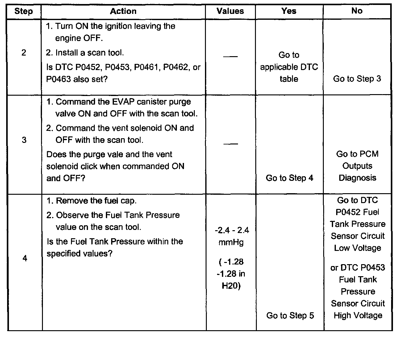 - A damaged harness. Inspect the wiring harness for damage. If the harness appears to be OK, observe the Fuel Tank Vacuum display on the scan tool while moving connectors and wiring harnesses related to the sensor. A change in the display will indicate the location of the fault.