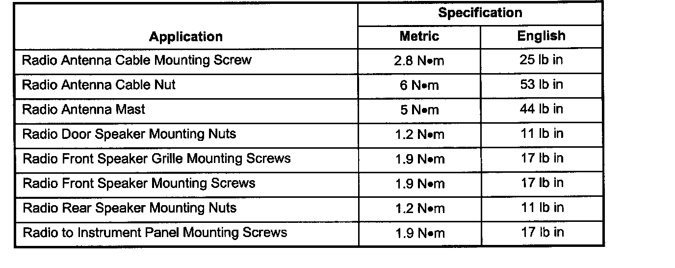 Fastener Tightening Specifications: