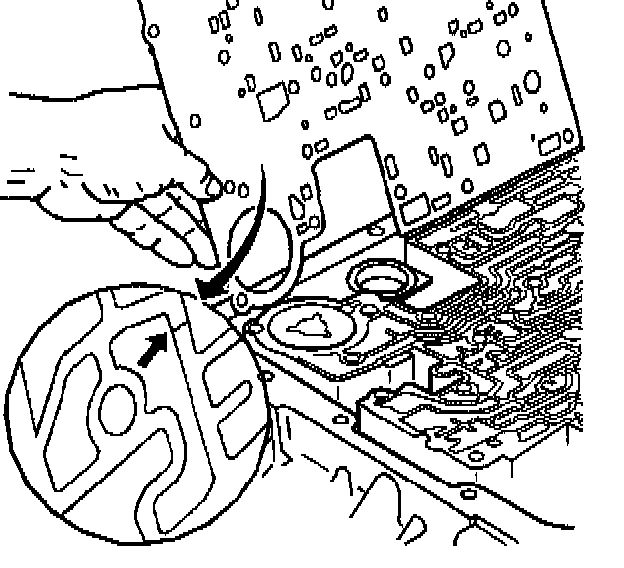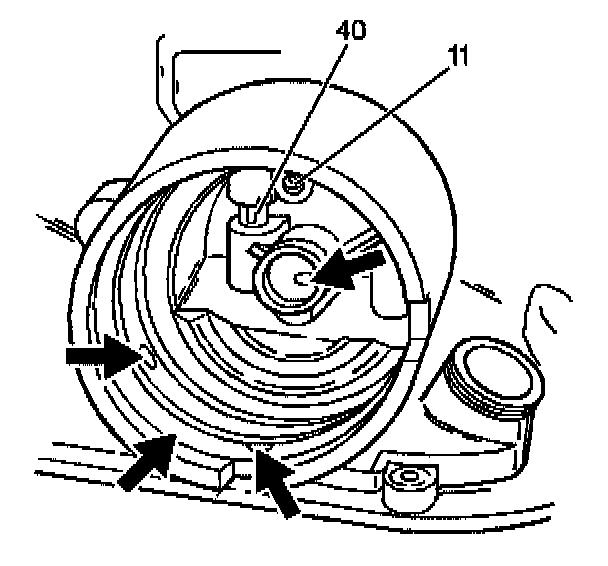 3. Inspect the 2-4 servo bore, the 3rd accumulator retainer and ball assembly (40), the orifice cup plug (11) in the servo bore, and the 2nd apply piston pin bore for any of the following conditions: