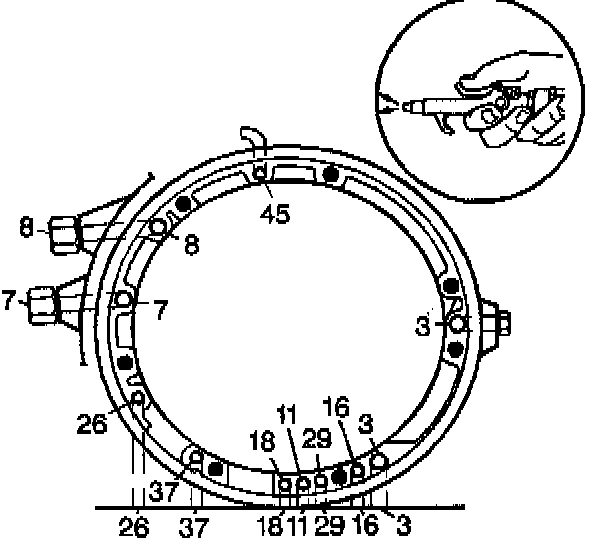 2. Using compressed air, blow into all of the case fluid passages (3, 7, 8, 11, 16, 18, 26, 29, 37, 45) to ensure that all case fluid passages are clear of any obstruction.
