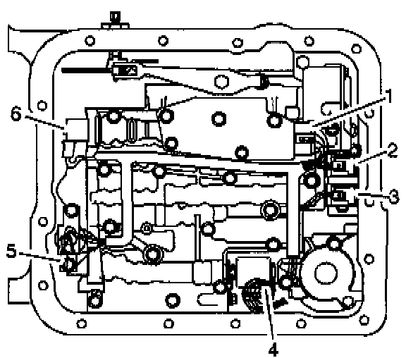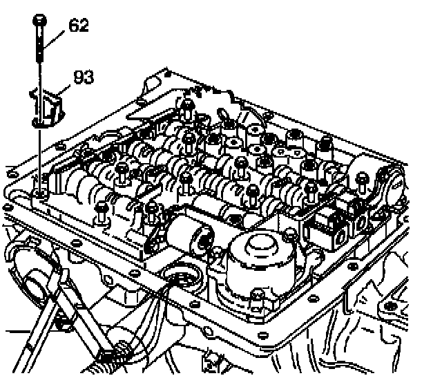 5. Install the fluid level indicator stop bracket (93) and the valve body bolts (62) that are shown only.