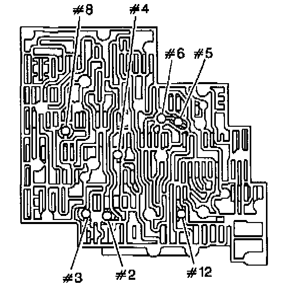 1. Install the checkballs (2-6, 8, 12) in the valve body and retain checkballs with J 36850 or an equivalent.