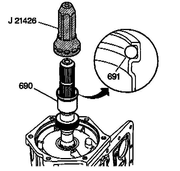 1. Using the J 21426, install an output shaft sleeve (690) and an output shaft seal (691). Do not push the sleeve past the machined surface on the output shaft.