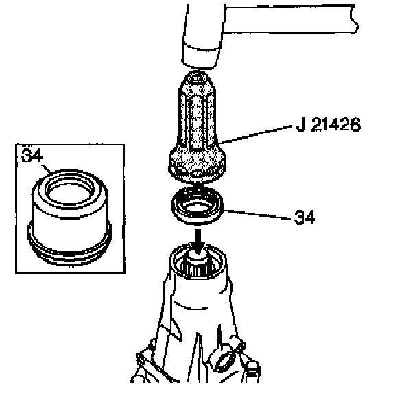 8. Using the J 21426, install the case extension oil seal assembly (34) (model dependent).