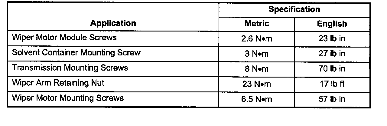 Wiper and Washer Systems: Specifications